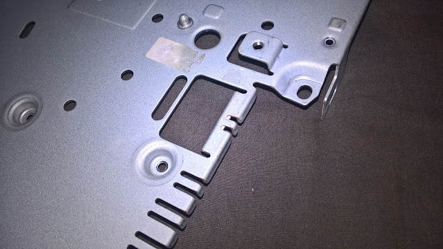 If you use the metal chassis from a SCPH-3xxxx PS2 but the disc drive from a SCPH-5xxxx the bottom chassis rear has a small jut out you need to bend it so that it no longer juts out. Otherwise it will collide with the SCPH-5xxxx disc drive plastic frame.